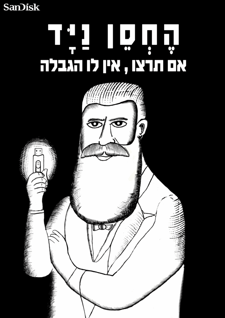 ,כרזה ארץ ישראלית מורדרנית של בינימין זאב הרצל ,מחזיק דיסק און קיי .”והוגה את שמו בשפה העברית: “הֶחְסֵן נַיָּד